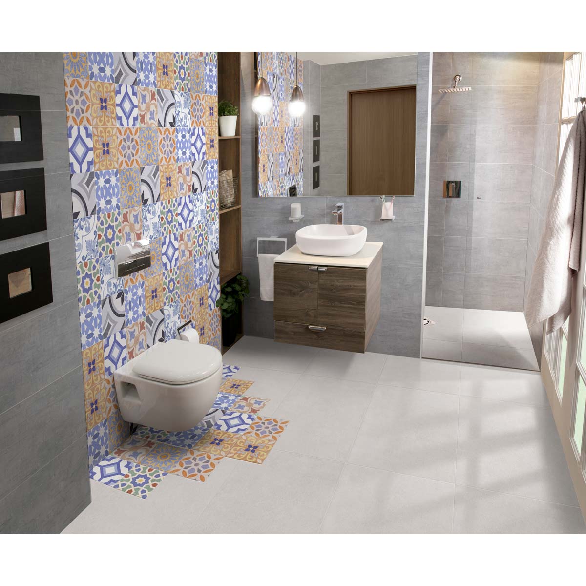 Novedoso decorado para pared o piso con una capa protectora que le permiten soportar trafico comercial moderado, sus diseños están inspirados en elementos tradicionales como los llamados «hidraulicos», moriscos o mosaicos, en una combinación de colores neutros y vivos con toques modernos y un acabado semimate.