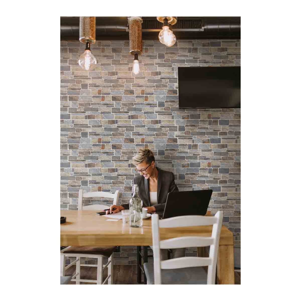 Acabado mate y formato 34.5×62, esta inspirado en la belleza de piedras irregulares y plasmado con gran realismo en varias tonalidades. Su diseño es un canto a la calidez listo para envolver tus espacios.